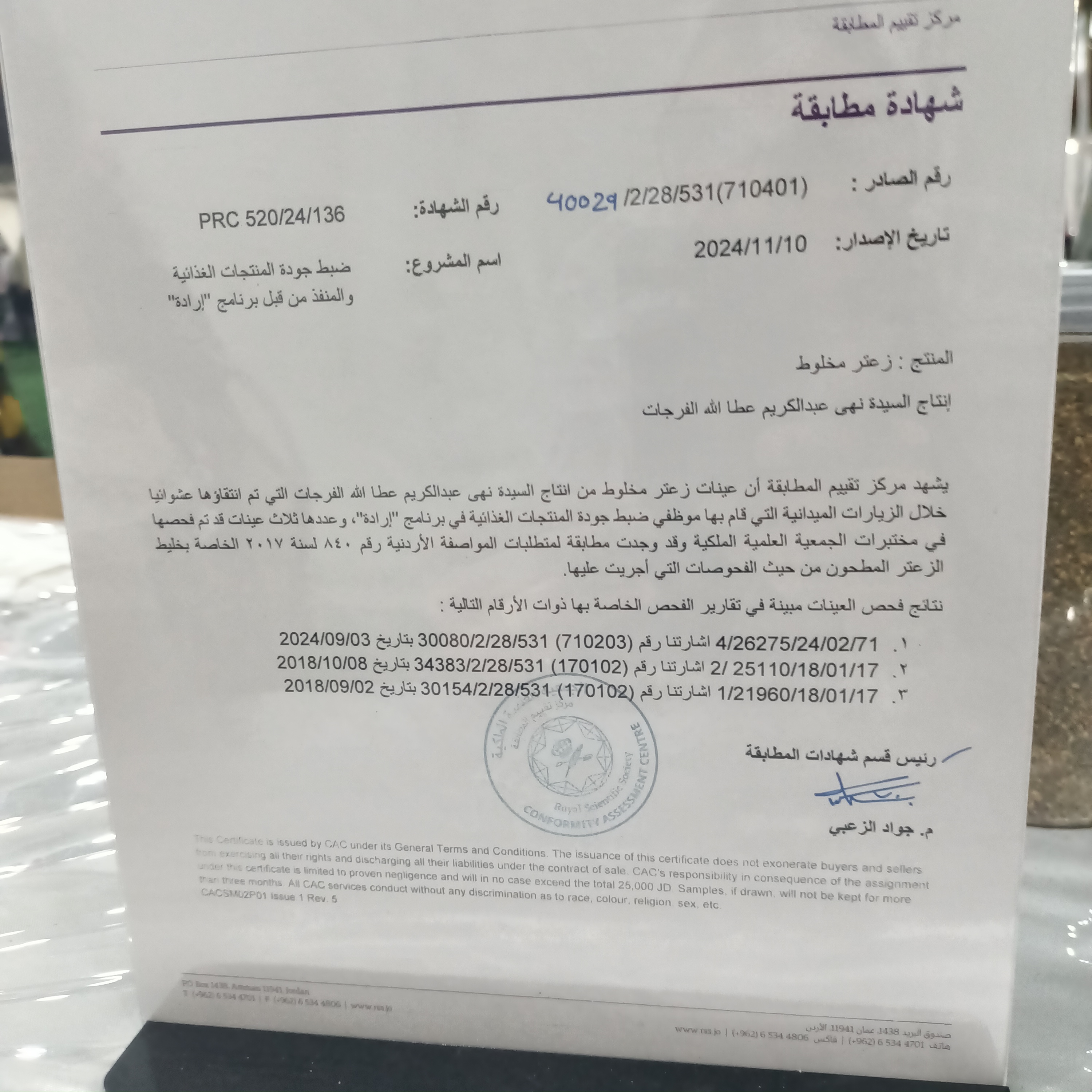 انا نها الفرجات بدأت قصة مشروعي بالزعتر من سفرة فطور حضرتها ل ضيوفي وعجبتهم نكهة الزعتر القوية والمحضر بطريقة مميزة طعم بلدي بشهي وريحة بتعبي المكان من هون بلشت بزعتر ريف البلدي مع إرادة من 2019